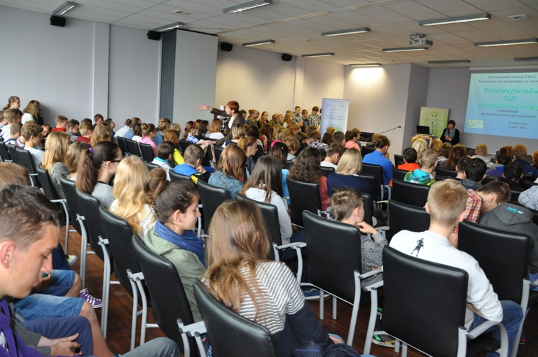 Oszczędzanie energii się opłaca. Wie to młodzież, która w dniu dzisiejszym wzięła udział w seminarium proekologicznym poświęconym tematyce oszczędzania energii. Seminarium zorganizowane zostało dzięki dofinansowaniu z Wojewódzkiego Funduszu Ochrony Środowiska i Gospodarki Wodnej w Gdańsku w ramach Projektu „Kościerzyna mówi TAK oszczędności energii”. Wiedzy na temat oszczędzania energii oraz odnawialnych źródeł energii, licznemu gronu młodzieży, dostarczyli prelegenci z Fundacji Poszanowania Energii oraz Polskiego Stowarzyszenia Pomp Ciepła.