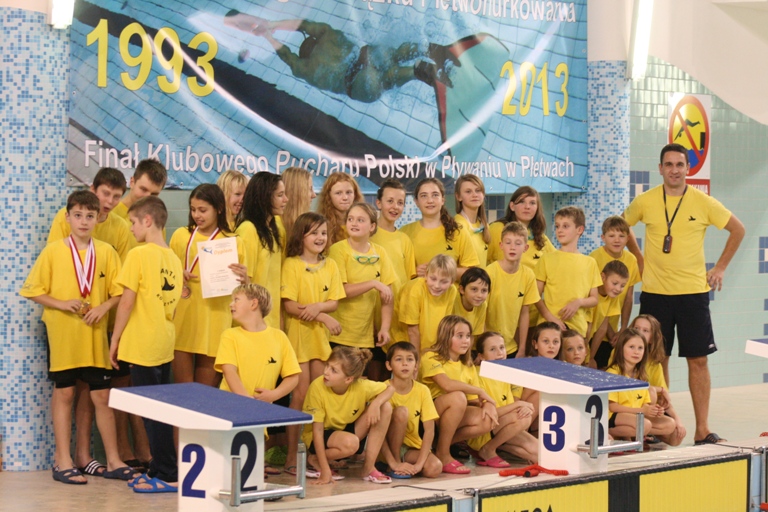 Na zawodach nie zabrakło reprezentantów Kościerzyny, którzy zdobywali medale w najmłodszej grupie wiekowej, czyli kat. E(11 lat i mniej). Magdalena Majewska-wychowanka sekcji pływania PCM Garczyn i również reprezentująca klub Manta Kościerzyna zdobyła 2 brązowe medale i w klasyfikacji roku 2013 została trzecią zawodniczką w Polsce w grupie E. Natomiast Szymon Kropidłowski zdobył 2 złote, 1 srebrny i 2 brązowe medale i został 2 zawodnikiem w Polsce w grupie wiekowej E. Szymon ustanowił dodatkowo rekord Polski na 50 m BF z czasem 25.20. Miało to miejsce w sobotę, natomiast w niedzielę bezpośrednio po sztafetach(Manta 5 miejsce) trener Michał Zarach zgłosił próbę bicia rekordu Polski na dystansie 100 m BF, który wynosił 57,05. Przy niesamowitym dopingu koleżanek, kolegów i rodziców z Manty, a także wszystkich innych zawodników Szymon ustanowił nowy rekord Polski, który obecnie wynosi 56,05 i miejmy nadzieję, że pozostanie na długo, bo jest to historyczna chwila dla pływania w płetwach w Kościerzynie. Ponadto bardzo dobrze zaprezentował się Marcin Łukowicz uzyskując wyniki tuż za podium, czyli miejsca 4 i 5.