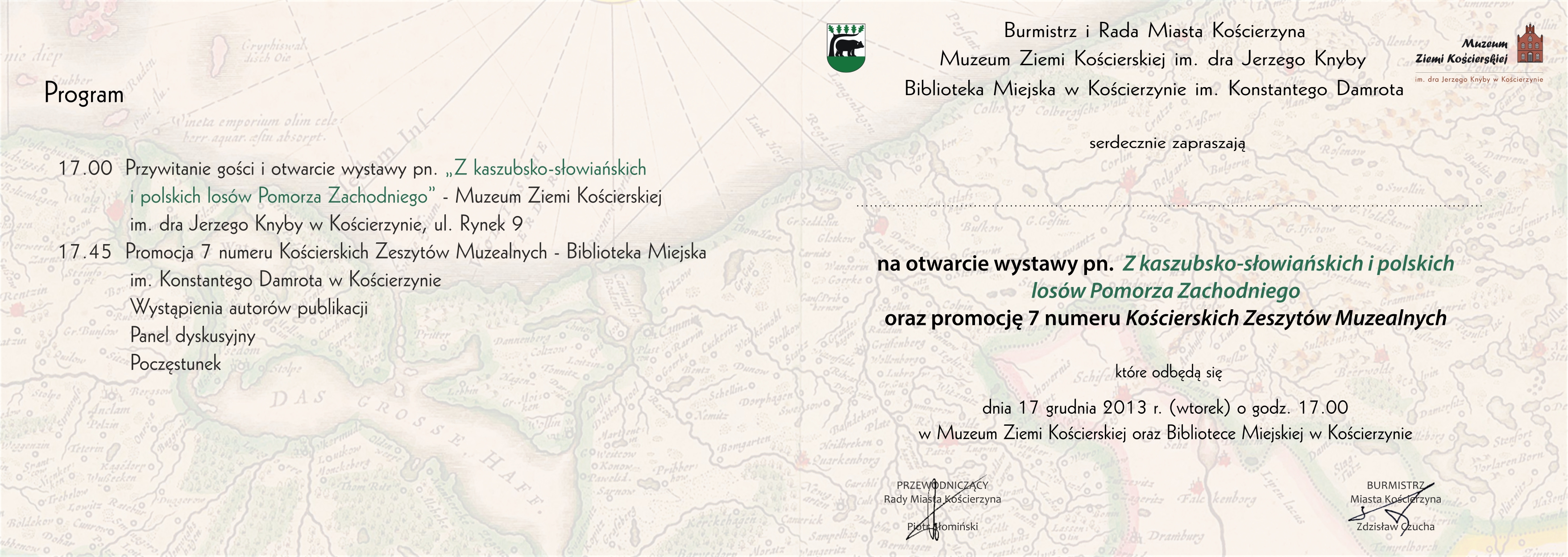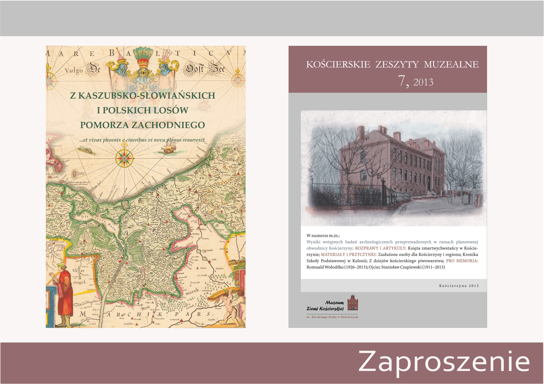 Promocja Kościerskich Zeszytów Muzealnych, która odbędzie się 17 grudnia o godz. 17.45 w Bibliotece Miejskiej poprzedzona zostanie otwarciem wystawy pn. „Z kaszubsko-słowiańskich i polskich losów Pomorza Zachodniego” w Muzeum Ziemi Kościerskiej o godz. 17.00. Wystawa została przygotowana przez Zrzeszenie Kaszubsko-Pomorskie w Szczecinie, Archiwum Państwowe w Szczecinie oraz Zamek Książąt Pomorskich w Szczecinie. Wystawa prezentuje dzieje Kaszubów i Słowian na Pomorzu Zachodnim od wczesnego średniowiecza do czasów współczesnych. Celem ekspozycji jest popularyzacja historii Pomorza Zachodniego, ze szczególnym uwzględnieniem dziejów i dorobku jego pierwszych gospodarzy – Słowian, w tym także Kaszubów. Nadmienić warto, iż na wystawie zaprezentowano wiele ciekawych, często nie istniejących w szerszej świadomości społecznej archiwaliów.