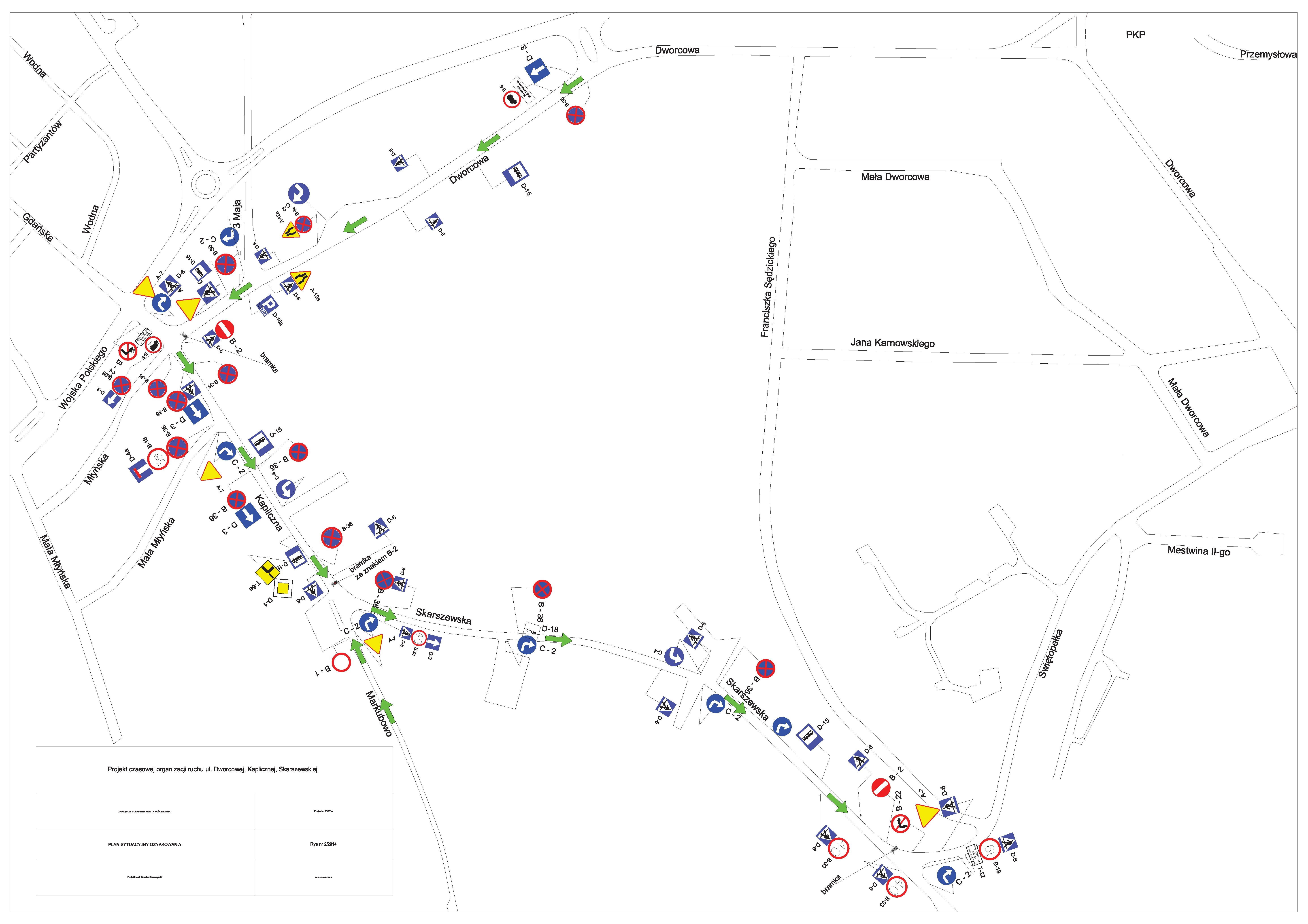 - Dworcowej od skrzyżowania z ul. Wojska Polskiego do skrzyżowania z ul. Gdańską.