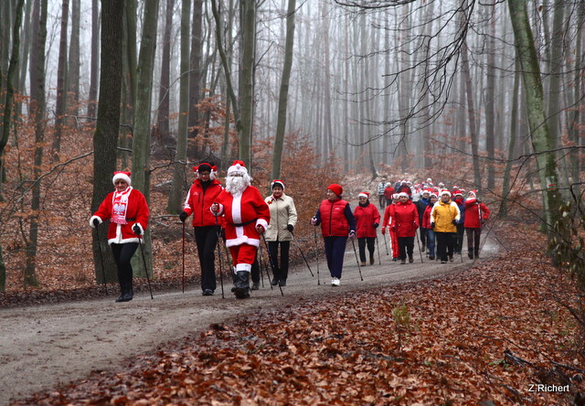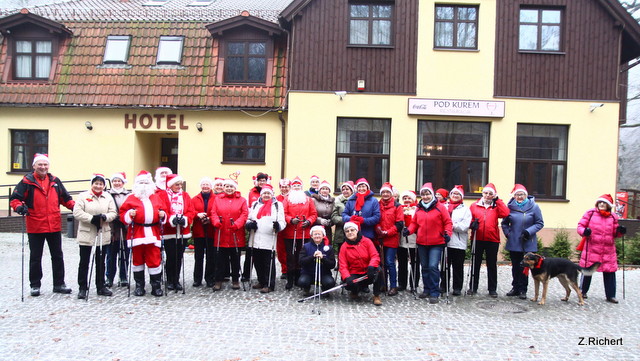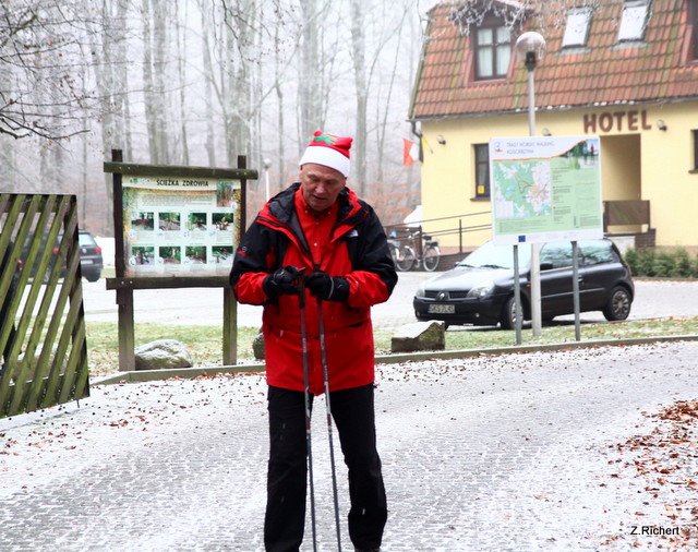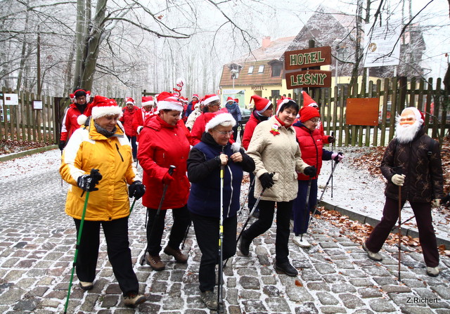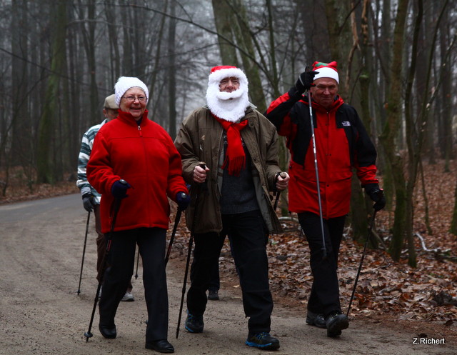 Wiadomo, że chodząc z kijkami łatwiej i szybciej możemy pokonywać kilometry. Wie o tym również ten, który musi w jeden dzień odwiedzić wiele domów, tj. Święty Mikołaj. On sam, z prawie trzydziestoma pomocnikami, trenowali szybkie dotarcie do wielu miejsc w jak najkrótszym czasie. Poniżej galeria zdjęć z tego spotkania. Zainteresowanym polecam odszukanie wśród wszystkich Mikołajów tego jednego - Prawdziwego. Za prawidłowe wytypowanie będzie nagroda, która zostanie zwycięzcy dostarczona w dzień 24 grudnia w okolicę jego własnej choinki.