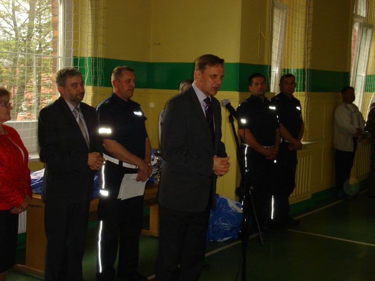 Nasza szkoła po raz kolejny gościła uczestników eliminacji powiatowych turnieju „Bezpieczni w Ruchu Drogowym”, które odbyły się 7 maja. W turnieju wzięło udział 7 drużyn ze szkół podstawowych i 9 drużyn ze szkół gimnazjalnych. Uczestnicy musieli wykazać się nie tylko rozległą wiedzą z zakresu przepisów ruchu drogowego, ale również doskonałą techniką jazdy na rowerze. Nad prawidłowym przebiegiem imprezy czuwali policjanci z Komendy Powiatowej Policji w Kościerzynie, którzy oceniali zmagania uczestników.