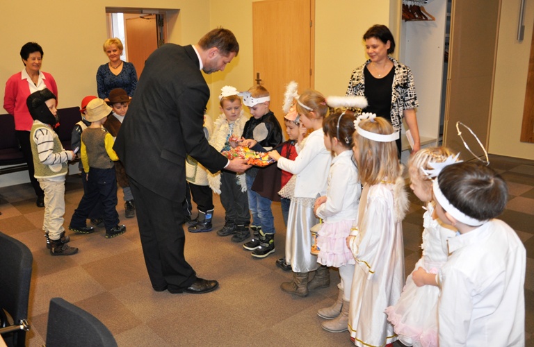 W dniu dzisiejszym Urząd Miasta Kościerzyna odwiedzili najmłodsi mieszkańcy naszego miasta z Przedszkola Samorządowego nr 7 w Kościerzynie, którzy z radością zaśpiewali kolędy i pastorałki. Takie spotkania przy wspólnej kolędzie pozwalają jeszcze bardziej poczuć atmosferę i magię Świąt Bożego Narodzenia.