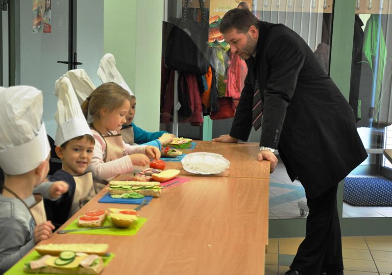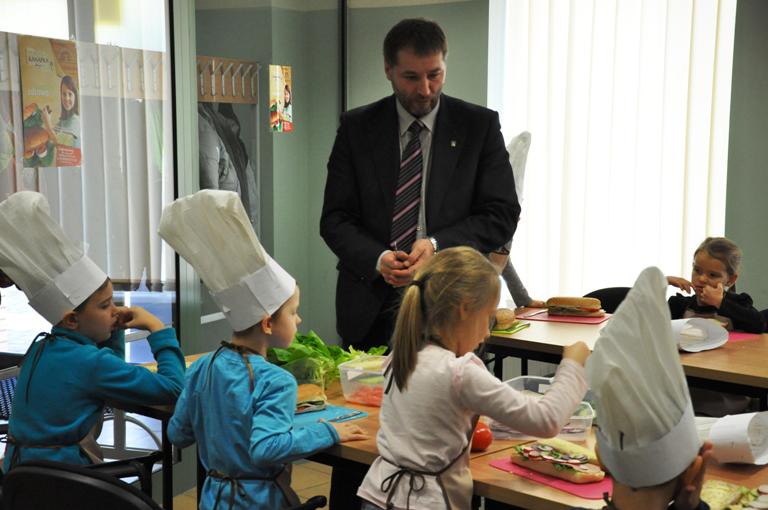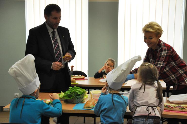 Burmistrz Kościerzyny Michał Majewski spotkał się z kościerskimi uczniami, biorącymi udział w Akademii Zdrowej Kanapki organizowanej przez Piekarnię i Cukiernię Państwa Jarzębińskich. Podczas cyklicznych warsztatów dzieci poznają zasady przygotowywania zdrowej żywności, dającej moc do pracy, nauki i zabawy.