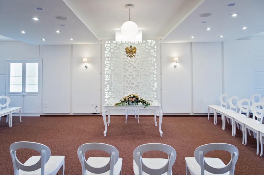 Szanowni Państwo, z przyjemnością prezentujemy oddaną do użytku na początku lutego br. nową Salę Ślubów Urzędu Stanu Cywilnego. Sala została przeniesiona na I piętro Urzędu Miasta Kościerzyna (pok. nr 11) i zaadoptowana wyłącznie na uroczystości zaślubin oraz Jubileusze 50-lecia pożycia małżeńskiego.