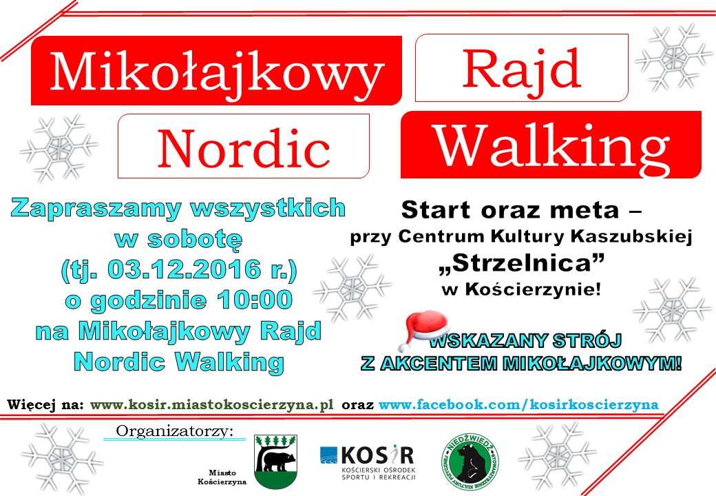 W sobotę, 3 grudnia 2016 r. odbył się „Mikołajkowy Marsz Nordic Walking”, który odbywał się ścieżkami kościerskich lasów. Po zakończonym marszu około 40 „Mikołajów” spotkało się w Centrum Kultury Kaszubskiej „Strzelnica”, aby wspólnie podsumować miniony sezon. Jako, że było to spotkanie mikołajkowe nie mogło zabraknąć poczęstunku oraz upominków dla wszystkich członków sekcji.