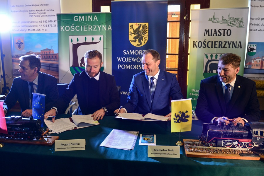 W uroczystości uczestniczyli ze strony Urzędu Marszałkowskiego Województwa Pomorskiego w Gdańsku - Marszałek Województwa Pomorskiego Mieczysław Struk oraz Członek Zarządu Województwa Pomorskiego Ryszard Świlski, natomiast w imieniu Miasta i Gminy Kościerzyna umowę podpisał Burmistrz Kościerzyny Michał Majewski. Wśród gości znaleźli się m.in. Wójt Gminy Kościerzyna Grzegorz Piechowski, poseł na Sejm RP Stanisław Lamczyk, Radny Sejmiku Województwa Pomorskiego Dariusz Męczykowski, radni obu samorządów partnerskich oraz licznie zgromadzeni mieszkańcy powiatu kościerskiego. Inwestycja umożliwi zintegrowanie za pośrednictwem węzła komunikacyjnego transportu indywidualnego (rower, samochód) i zbiorowego (autobus, kolej) i w efekcie usprawnienie układu komunikacyjnego i transportowego Kościerzyny i całego regionu. Pierwsze działania projektowe ruszą już w kwietniu 2017r.