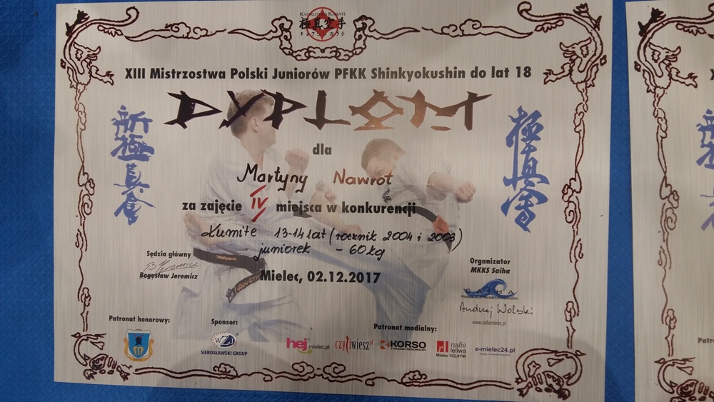 Martyna Nawrot zajęła IV miejsce w kategorii kumite 13-14 lat