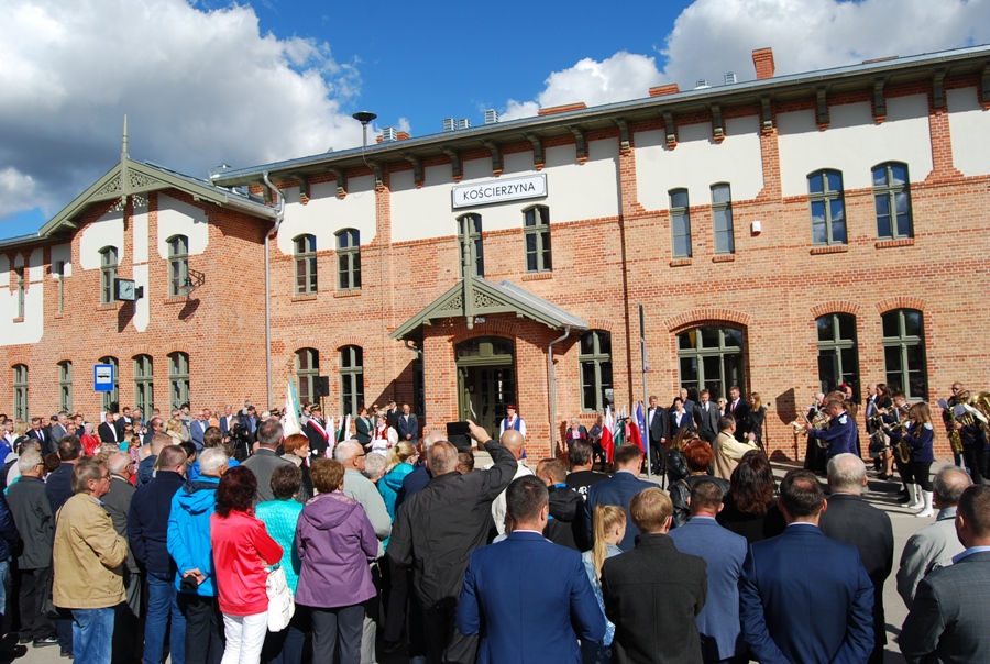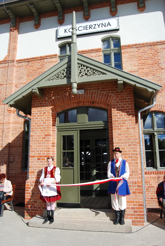 Następnie dworzec został poświęcony przez ks. Antoniego Bączkowskiego. Po krótkiej prezentacji projektu i historii Dworca uhonorowano osoby zaangażowane w realizację przedsięwzięcia, którym wręczono Statuetki Stolemów, symboli dawnej potęgi kaszubskiego Pomorza. Statuetki otrzymali: Stanisław Repiński, Wicemarszałkek Województwa Pomorskiego Ryszard Świlski, reprezentujący Instytucję Zarządzającą środkami UE w naszym województwie oraz Pan Julian Skrochocki. Na zakończenie uroczystości uczestnicy ceremonii, a tym mieszkańcy miasta, udali się na wspólne zwiedzanie Dworca. Całą uroczystość uświetniła swoim występem Orkiestra Begama.